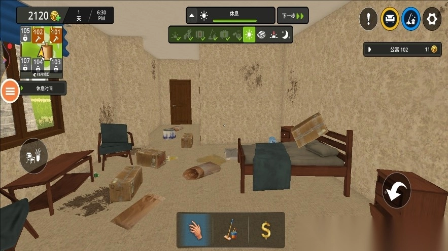 1、房间优先级:优先清理高价位房间(如公寓 102),提升单位时间收益。