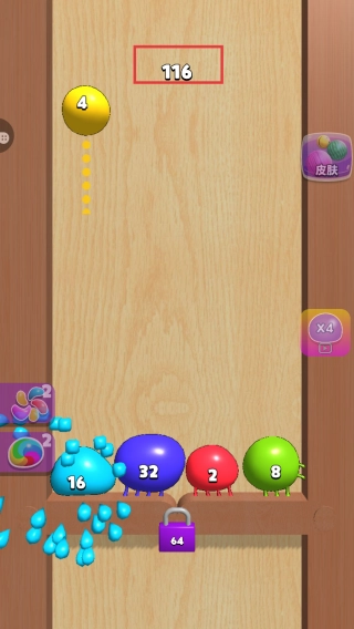 2、操控黄色小球下落,碰撞数字球,合并同色球升级,合成越多分数就会越高。