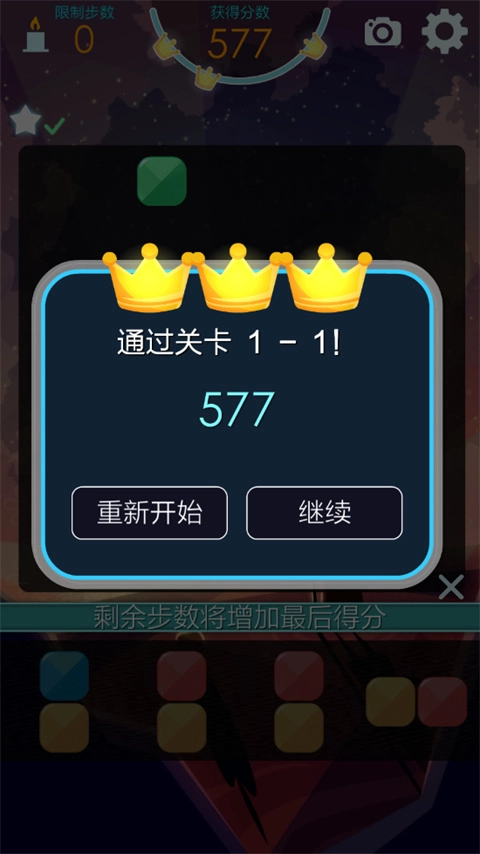 每次通关之后会判定星级,星级是根据我们这个关卡当中剩余的步数决定的,如果有超过10步以上的步数的话,一般就可以达到3星级了,并不难。
