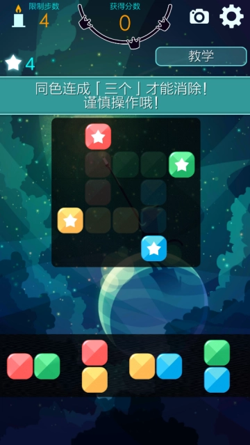 每个关卡通关的目标是不一样的,进入关卡之前,会有我们需要消除的方块的颜色和数字,还有规定的步数,你必须要在步数内去完成才可以。