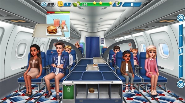 5、游戏采用关卡制,每完成一关便可获得金币奖励,这些奖励可用于升级客舱内的设施。升级设备不仅能增加收入,还可缩短餐点的制作时间,提升整体效率。