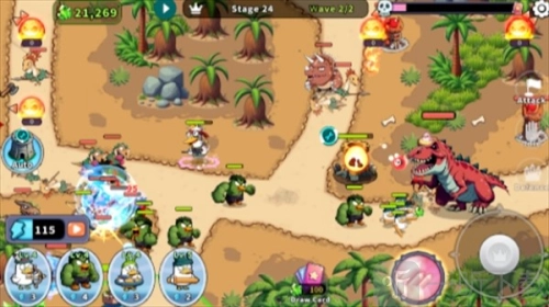 1游戏玩法简单易掌握,只需在各个不同的位置搭建各类防御塔,以此来攻打沿着道路行进的魔物,同时,还能够派出鸭子士兵参与战斗。