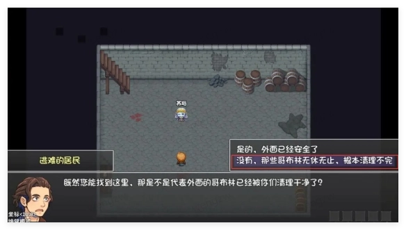 2、NPC与选择博弈:“逃难的居民”对话选项(安全了/哥布林没完)影响剧情分支(如后续任务触发、NPC态度),选择结果关联场景生态。