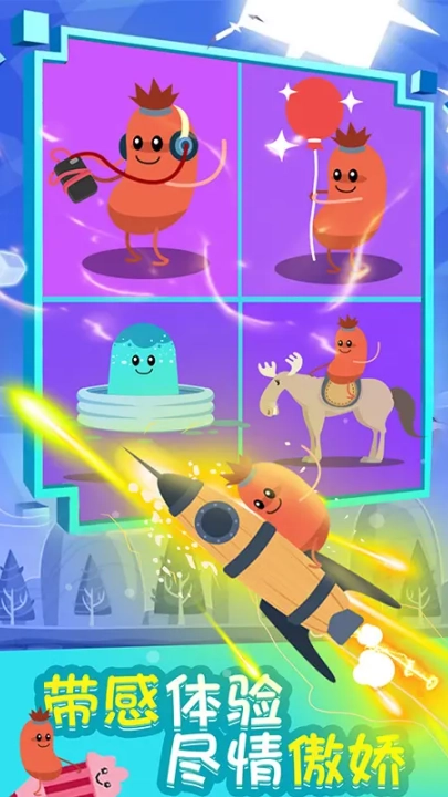 3、香肠人角色Q萌可爱,形象尽显俏皮,游戏采用卡通萌系画风,魔性玩法极具治愈效果。