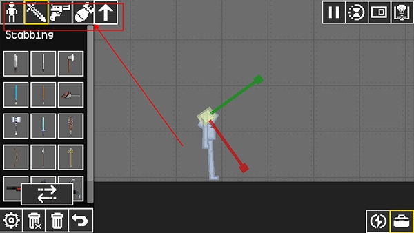 4、在左侧上方可以切换枪支、弹药、人物、兵器,把它们放入地图