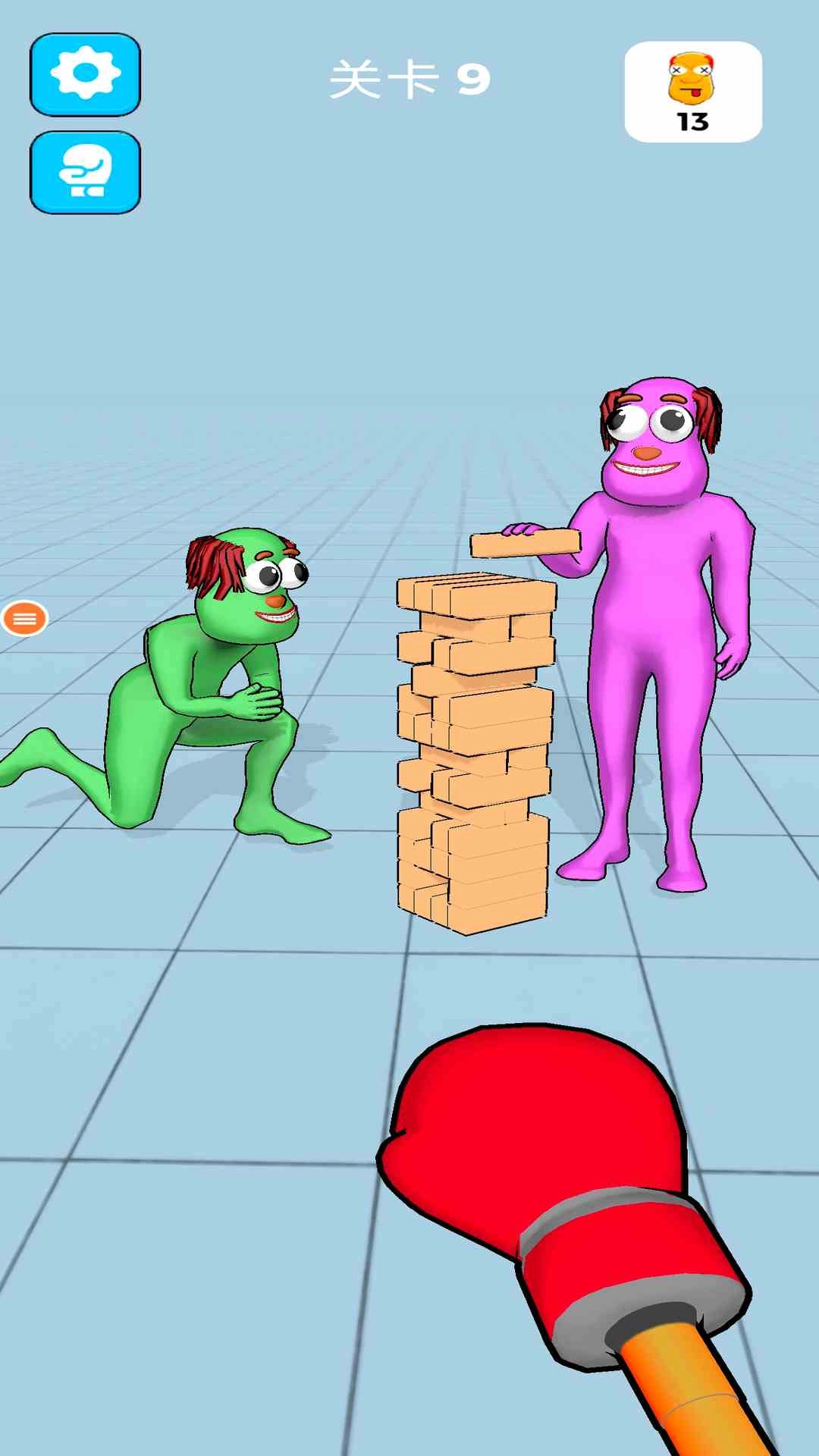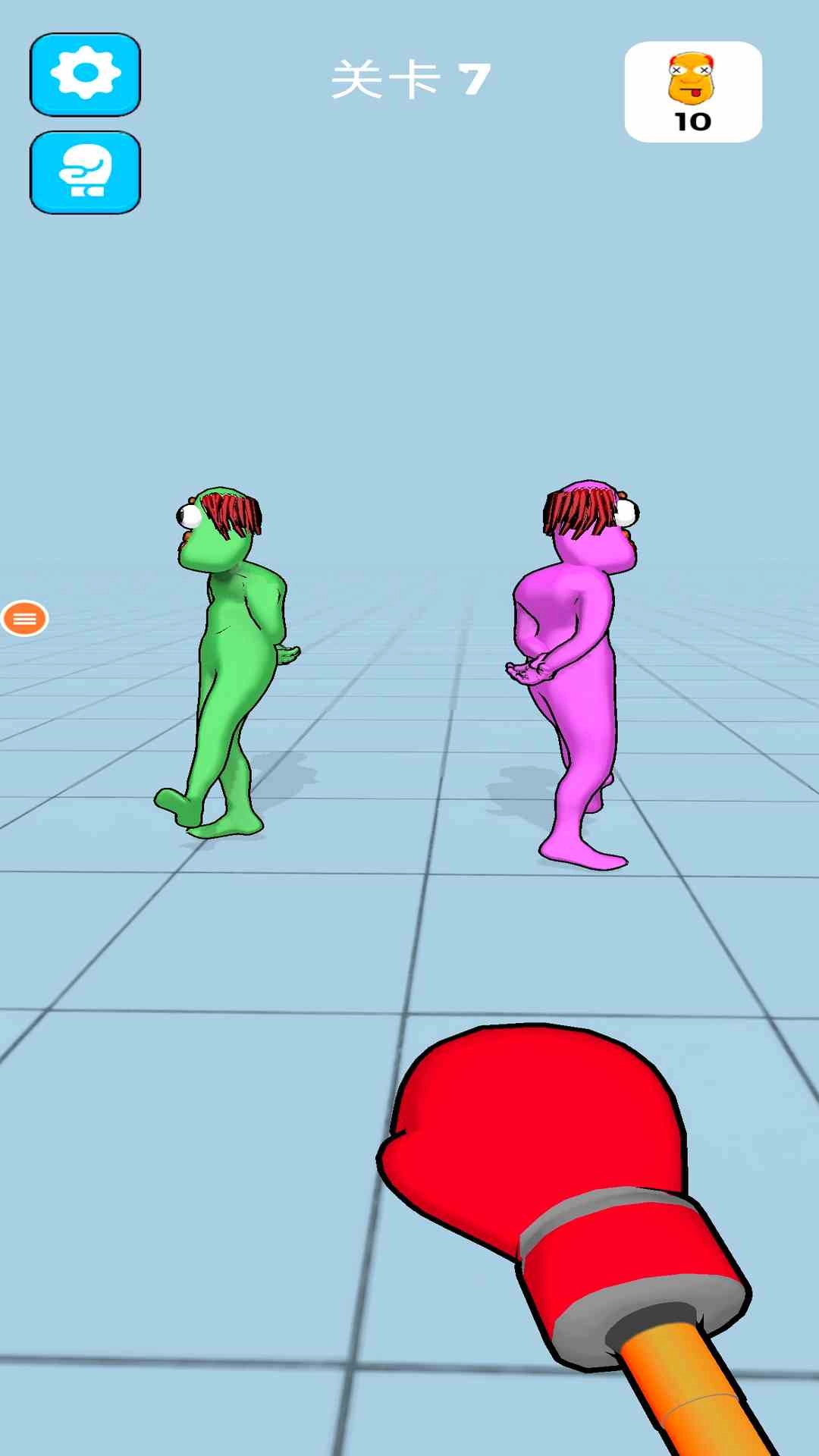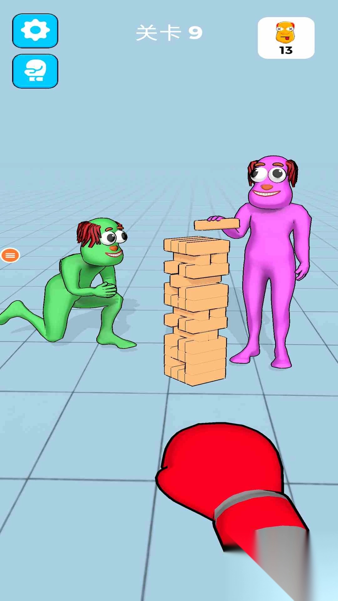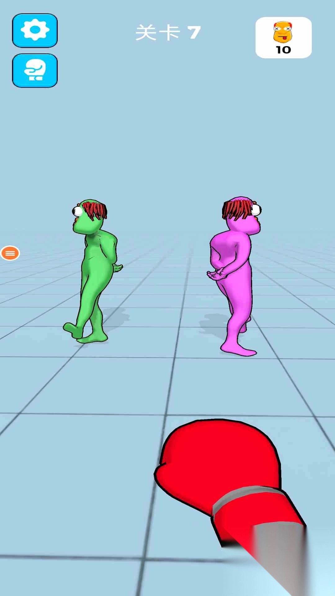 1、看清关卡提示,比如点击攻击,明确操作方式后,点击屏幕控制红拳击手套击打木偶人。