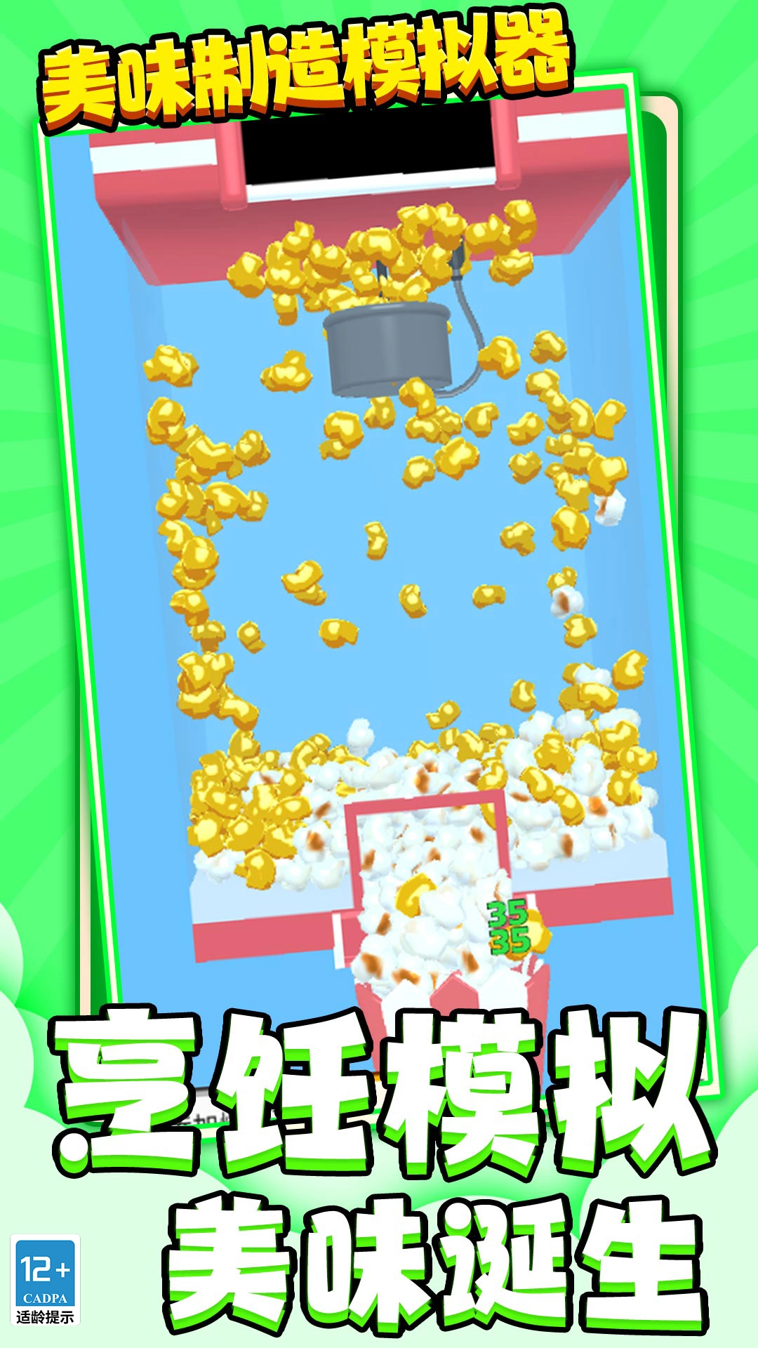 《美味制造模拟器》是一款充满趣味的模拟类游戏。在游戏里,玩家能够自主操控爆米花机,需在限定时间内制作出更多爆米花。而且要依据客人的不同需求,制作出各种对应口味的爆米花。玩家通过持续完成新的关卡任务,能快速对爆米花机进行升级,以此提高制作效率。仅需简单的操作,就能收获爆米花,进而不断吸引更多客人光顾。如此一来,玩家便可轻松获取海量金币奖励。