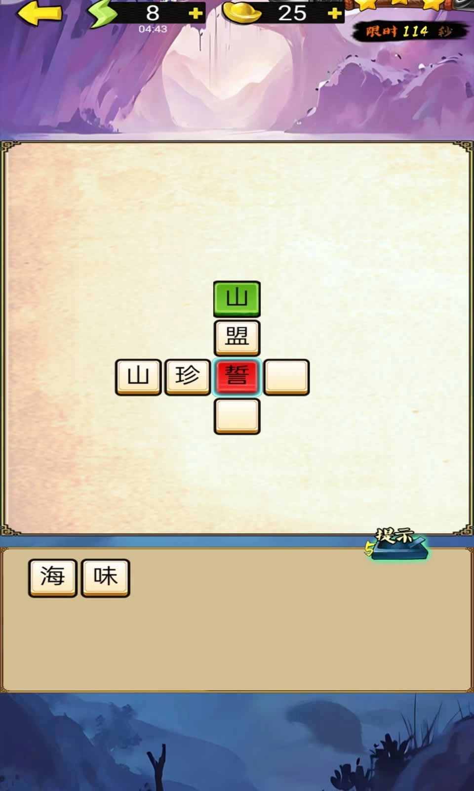 高级提示:展现成语的出处典故(可用游戏币兑换)。