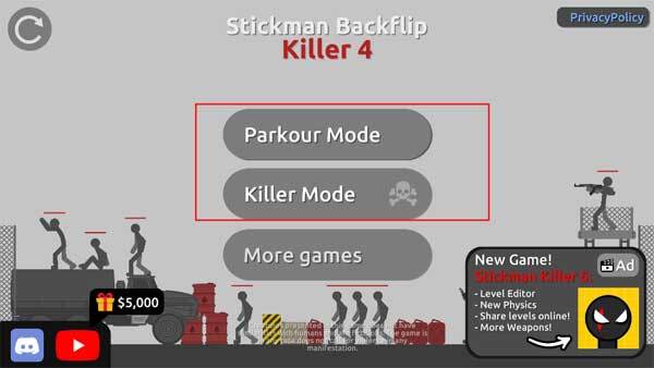 火柴人杀手4正版(Stickman Backflip Killer 4)是游戏商BeatenPixel推出的火柴人题材动作游戏。玩家可借助跑酷技巧、武器与史诗级慢动作效果消灭火柴人对手,还能升级装备技能、购买武器,目标是成为顶尖的火柴人强者。游戏设有两大核心模式:后空翻跑酷模式与融入布娃娃元素的杀手模式。在杀手模式中,你能像“火柴人下马”般击碎敌人骨骼,核心玩法是通过特技与武器摧毁所有敌方火柴人;而跑酷模式下,你需要依靠布娃娃物理机制完成动作,抵达终点标志方可通关。心动不如行动,感兴趣的话就赶紧来体验吧!