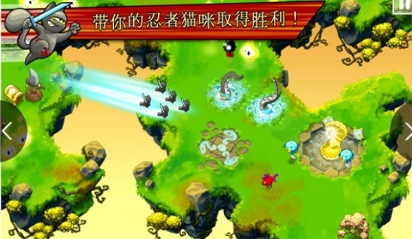 操控十分简单,玩家只需轻触屏幕,就能控制忍者猫完成跳跃动作,轻松快速地上手游戏,尽情享受其中的乐趣。