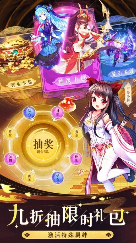 2、扮演一位运筹帷幄的军师,通过收集、养成和升级卡牌,打造出无敌的战斗队伍,游戏还增加了全新的养成方式,轻松的培养强大的角色,自由的升级,完成更多的精彩战役。