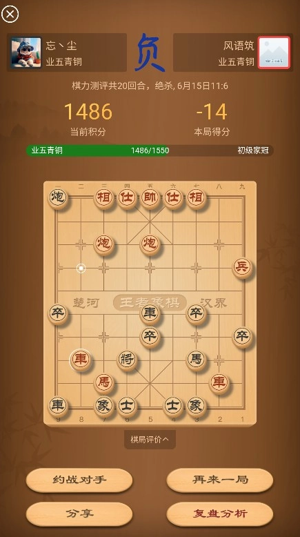 4、完成棋力测试后,系统会根据玩家的棋艺水平给出分数。棋力测试可以帮助玩家了解自己的棋艺水平,从而更好地提高棋艺水平。