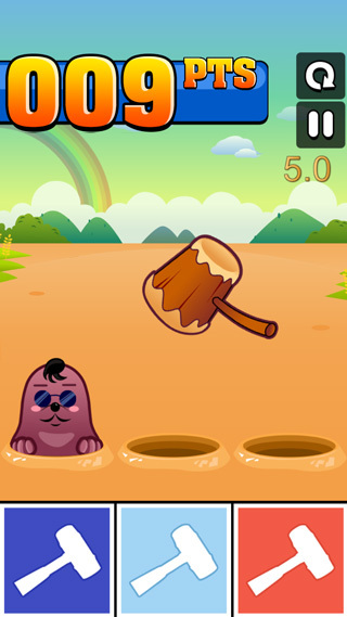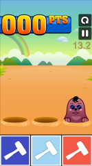 3.操作界面:三个洞口对应下方三个锤子按钮,需准确点击对应锤子而非直接点击地鼠。