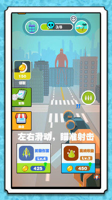 3、击中弱点可快速削弱巨人血量,完成击杀后,收集金币,解锁新武器、关卡,继续挑战更大巨人。