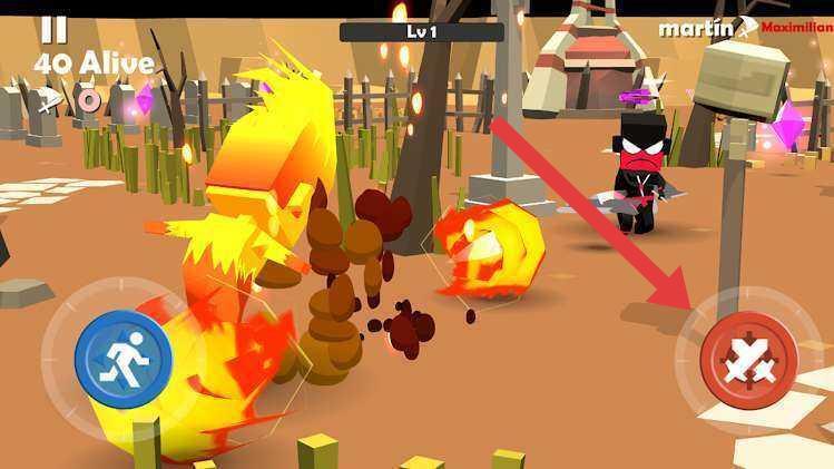 3、进入操作阶段,点击右侧带有箭头指向的攻击按钮,释放近战或远程技能。同时,配合左侧的移动按钮,在诸如墓地、草地这类场景中展开战斗,力求存活到最后。