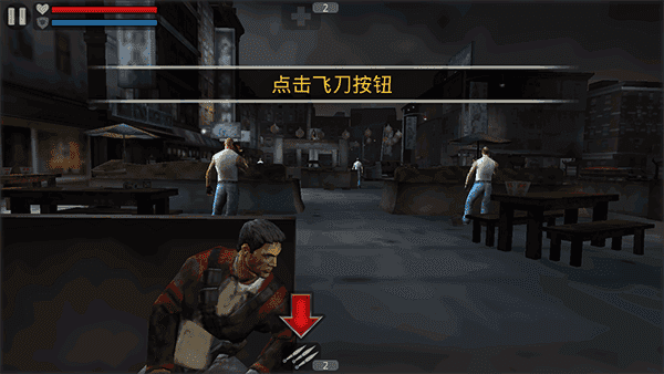 5、加满血后系统提示我们使用飞刀的技巧,飞刀是消耗品比较贵,但是非常厉害。点击要攻击的敌人,一个飞刀过去就死了,比机枪都厉害。