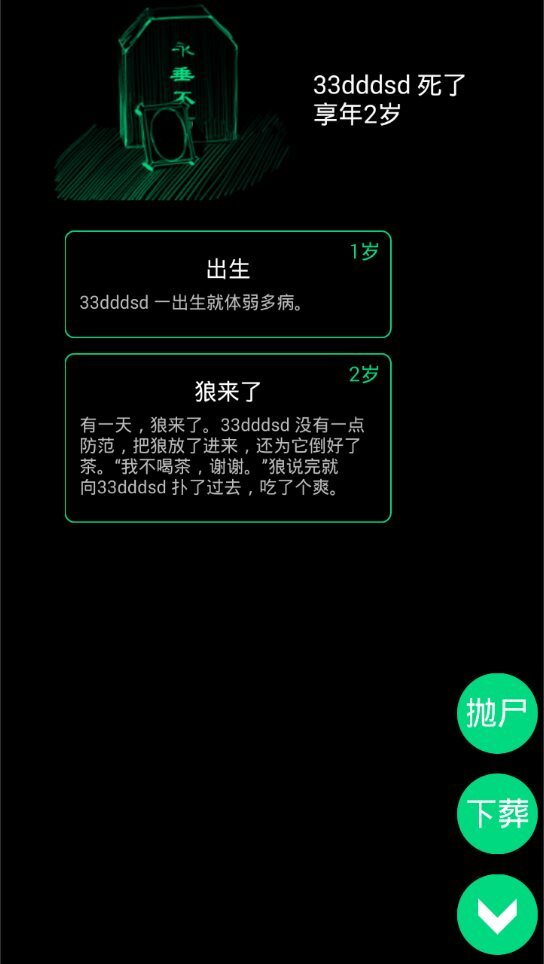 这是一款关乎人生的游戏,玩家能够打造专属角色,于这个充满趣味的社会里体验一生。角色离世后,还能把自己的坟墓分享给好友。游戏中的事件走向会依据角色的抉择而变动,部分事件也会随机出现。所有事件都依赖玩家贡献,你也可以把自己的想法提交给作者,让其融入游戏之中。