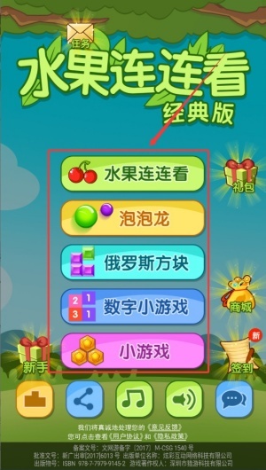 4、通过手指滑动将两个相同种类的水果连接起来,当三个或以上同种水果连成一线时即可消除得分。
