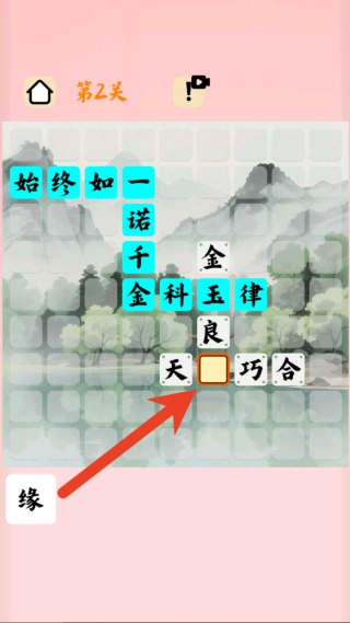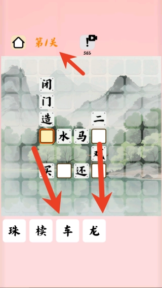 1. 进入关卡之后,留意棋盘上横向以及纵向所缺失的成语布局情况。