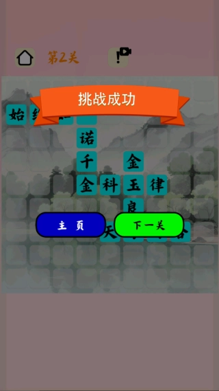 4、当所有空缺都准确填写完毕,且纵横方向的成语均成立,就意味着成功通过此关,同时能够解锁难度更高的新关卡,继续展开挑战。