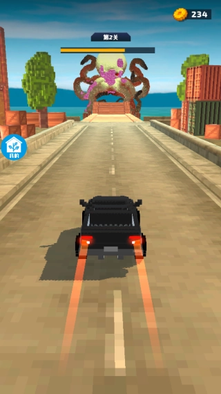 1. 在城市场景里,玩家驾驭着汽车,向着破坏城市的巨型怪物驶去,依靠持续撞击对怪物造成损伤,直到将它打败。