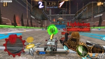 游戏操作十分便捷:通过拖动左下角的模拟摇杆来操控赛车的移动方向;利用装备按钮可以对敌人发起攻击或进行防御。在规定时间内,将足球撞入球门次数更多的一方获胜,此外,把对手的赛车撞得彻底损坏也是一种可行的获胜方式。