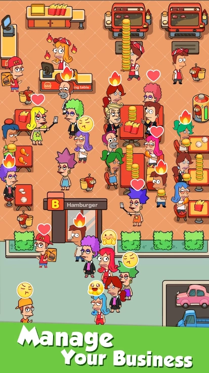 《闲置汉堡大亨》最新版本,是一款极具创新性的模拟经营类游戏。在游戏中,玩家将化身为汉堡店的老板,从一个小小的摊位起步,一步一步发展,最终成为掌控汉堡帝国的经营大亨。在此过程中,玩家需要全方位管理店铺的日常运作,涵盖选址、装修、菜单规划、员工招聘等诸多方面。要通过持续提升服务品质,创新菜品,来吸引更多顾客,达成经营目标。