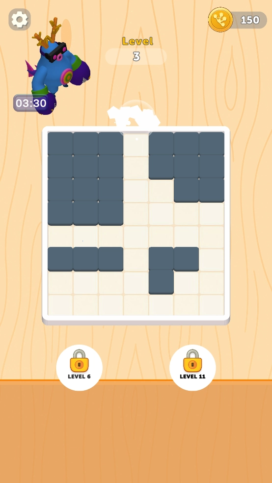 目标是将提供的多种形状的方块巧妙地摆放到棋盘上,最终清除所有的方块以完成每个关卡。
