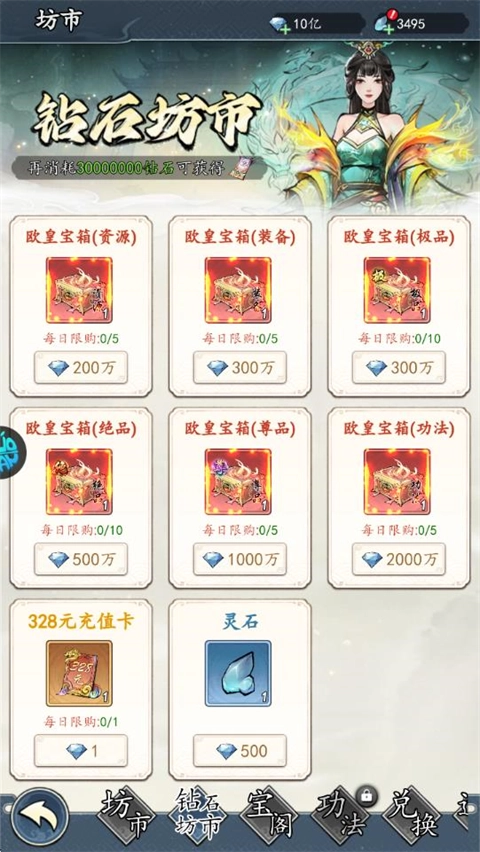 1注意啦!钻石坊市每天都会售卖欧皇宝箱,千万不要错过这个难得的机会,一旦入手,稳赚不赔!