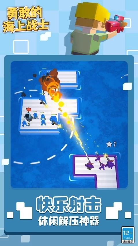 《勇敢的海上战士》是一款休闲射击类小游戏。在这片广袤的大海之上,玩家要操控木板在海面航行,通过打败敌人以及打捞落水人员,获取更多士兵来增强自身战力。当成功击败所有敌人后,还能得到他们的木板,进而组建一艘更为庞大的“战舰”!