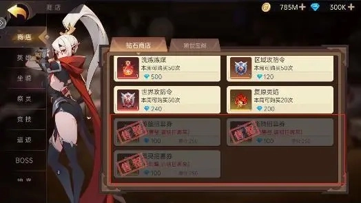商店主要分为钻石商店与各种代币商店以及我们的日常充值代币恒晶(可白嫖抽取),钻石是我们日常的流通货币,也是我们的主要养成基础,而代币则是通过日常副本与竞技获取,代币能够获取的资源十分多,大家要明天每周合理兑换,对于白嫖玩家来说,钻石商店只购买每日折扣与每周折扣,代币则优先换取自身需要的英雄、坐骑、祭灵与专武养成资源,遗迹商店中会提供全属性宝石,每周一定要购买,恒晶则是用来购买弹窗礼包与活动礼包。