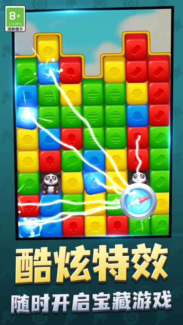1. 当匹配立方体时,会触发绚丽的特效,具备强大的视觉冲击力,使普通的消除操作观赏性大增,进而提升游戏体验。
