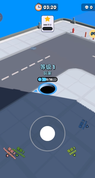 1、滑动屏幕拖动黑洞进行移动,在地图当中寻找吞噬的目标。