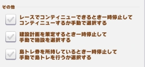 その他建议全都勾上,第一个是比赛没赢时暂停手动选择用闹钟,第二个是心得选择时暂停手动选。 建议这些地方都使用手动,因为AI没有那么智能,自动吃闹钟很可能在打杏目时浪费掉(种马没必要赢杏目),自动选心得也很抽象,自己选好点。