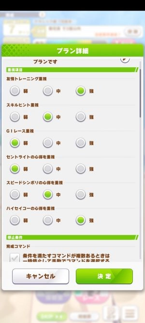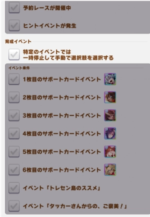 停止条件无视,育成事件建议特定支援卡自己选,否则选项会默认选第一个。