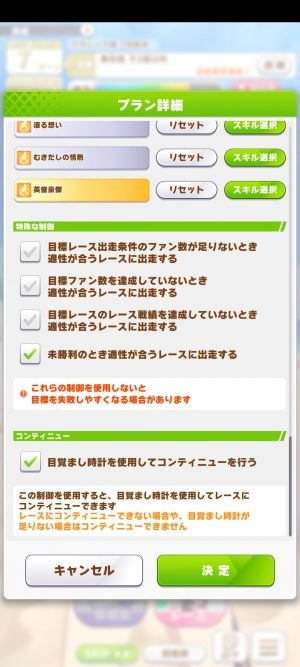 优先技能最多设置十个,育成时若某个指令能获得优先技能,则会优先进行该指令。选上一个弯回,防止庸医扎针。根据大赛要求选上特定技能即可。