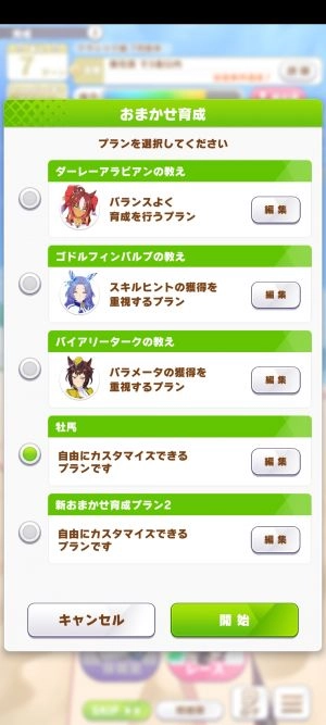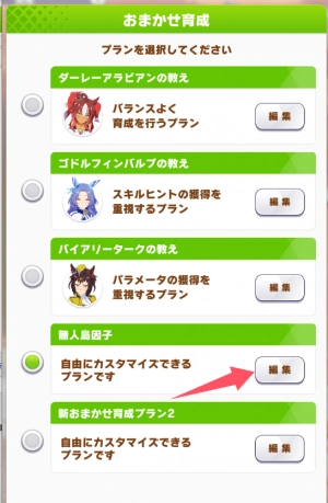 在育成界面点击おまかせ(右上角橙色),点开编辑