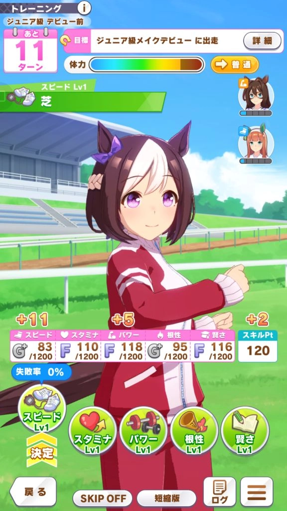 毅力:影响最后冲刺阶段持久力不足时保持速度的时间长短,根据绿色恶魔的战后提示,这个点数也跟赛马娘的斗争心有关,有利于比赛最后冲刺阶段赛马娘超车
