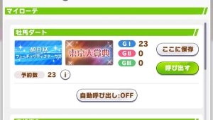 有一些赛马娘的育成目标会根据赛前的对话选择而改变,例如:赤骥可以选择奥克斯(オークス)或者德比、福来可以选择スプリングS或者德比等