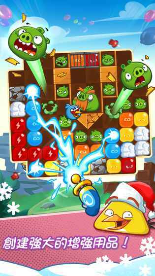 尽管游戏主角依旧是那几只调皮捣蛋的小鸟,不过在玩法设计上,开发商再次做出了全新的尝试。这次采用的是消除类玩法,不同的小鸟被分别装在不同颜色的气球里,玩家选择不同颜色消除气球后,小鸟就会被释放出来。至于系列里的反派角色,绿猪们依旧会在游戏中亮相。