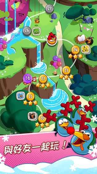由Rovio公司推出的怒鸟系列新作,是一款主打消除闯关的休闲益智游戏。游戏沿用了系列经典的小鸟形象,玩家需要通过点击消除的方式,帮助被困在彩色气球里的球形小鸟们挣脱束缚、重获自由,体验充满趣味的闯关过程。