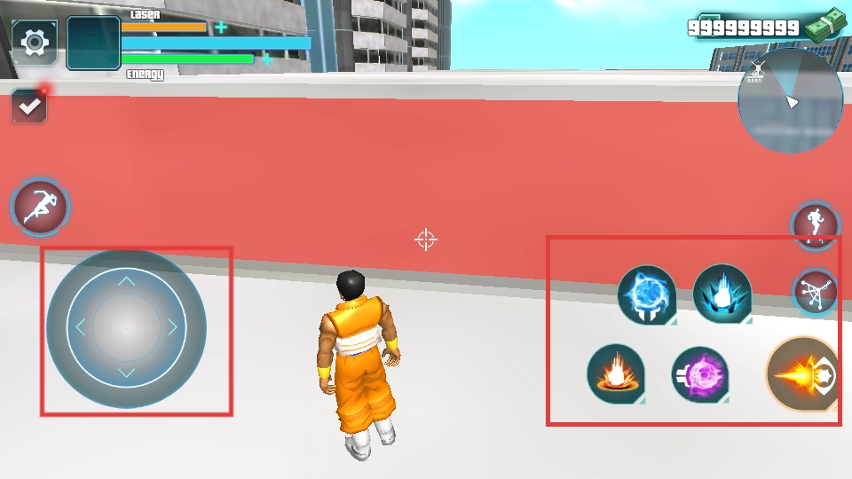 4、在城市中,通过左侧摇杆控制移动,右侧技能按钮释放攻击,完成挑战。