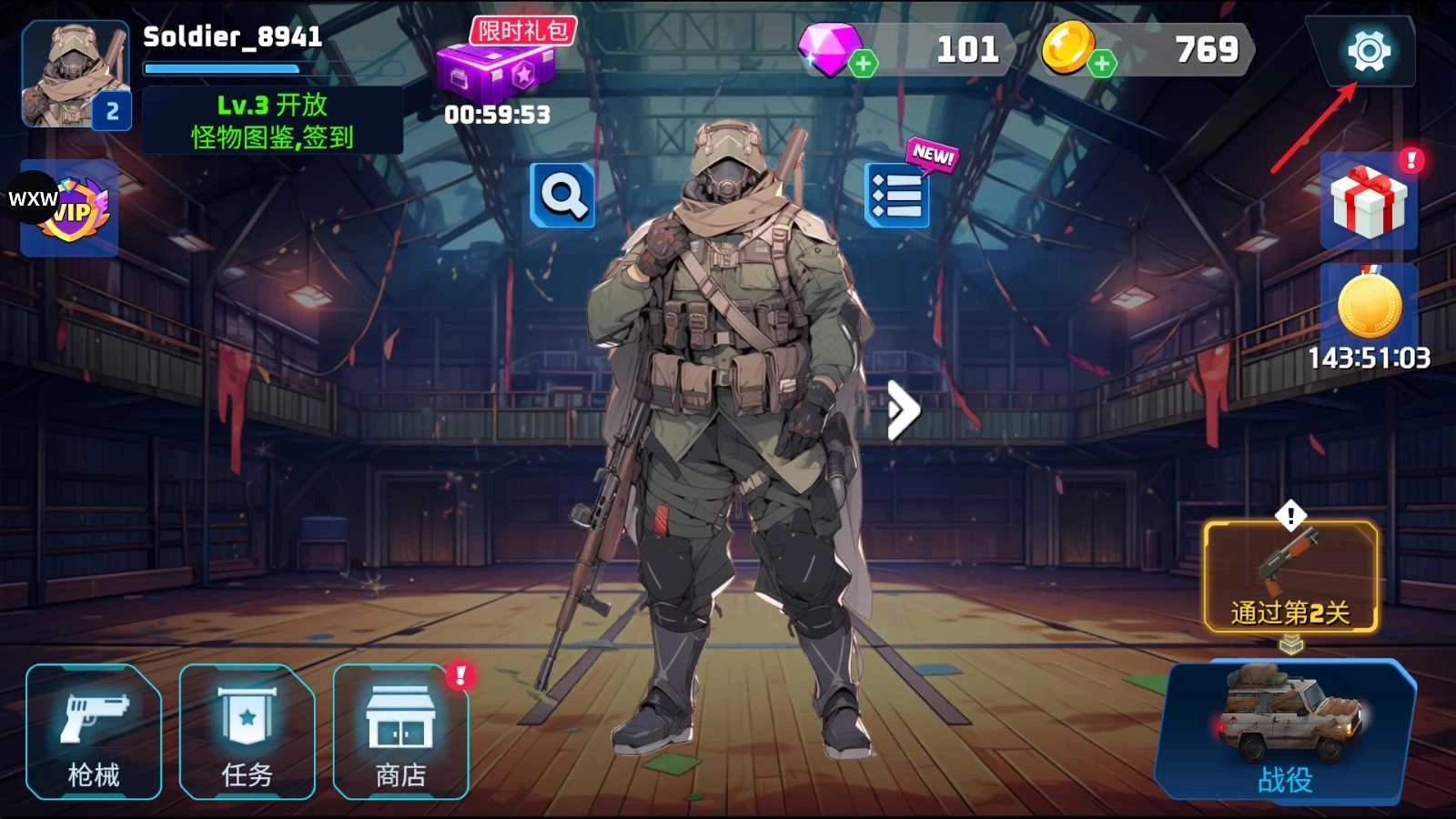 1、进入游戏主界面后,点击右上角的齿轮图标,即可进入系统设置菜单。