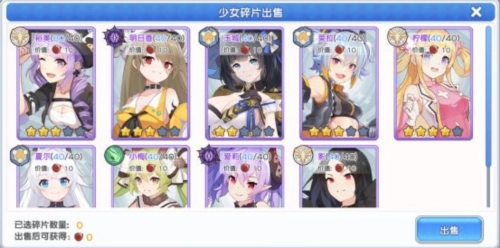 如图,紫卡在自己的角色仓库右上角进行分解,40片紫角色可以分解为400少女印章。 少女商店的四个输出没有兑换的必要,选择自己需要的奶来兑换。