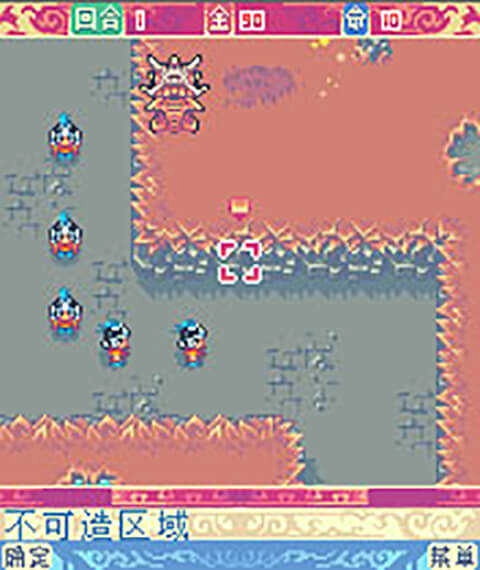 敌兵分批从敌城出发,玩家每消灭一个敌兵获得一些金,用金可以在我方城池中营建各式各样科技建筑,