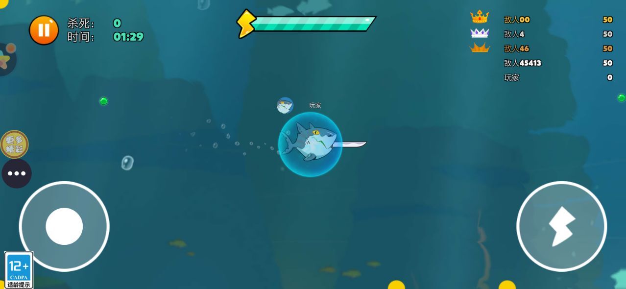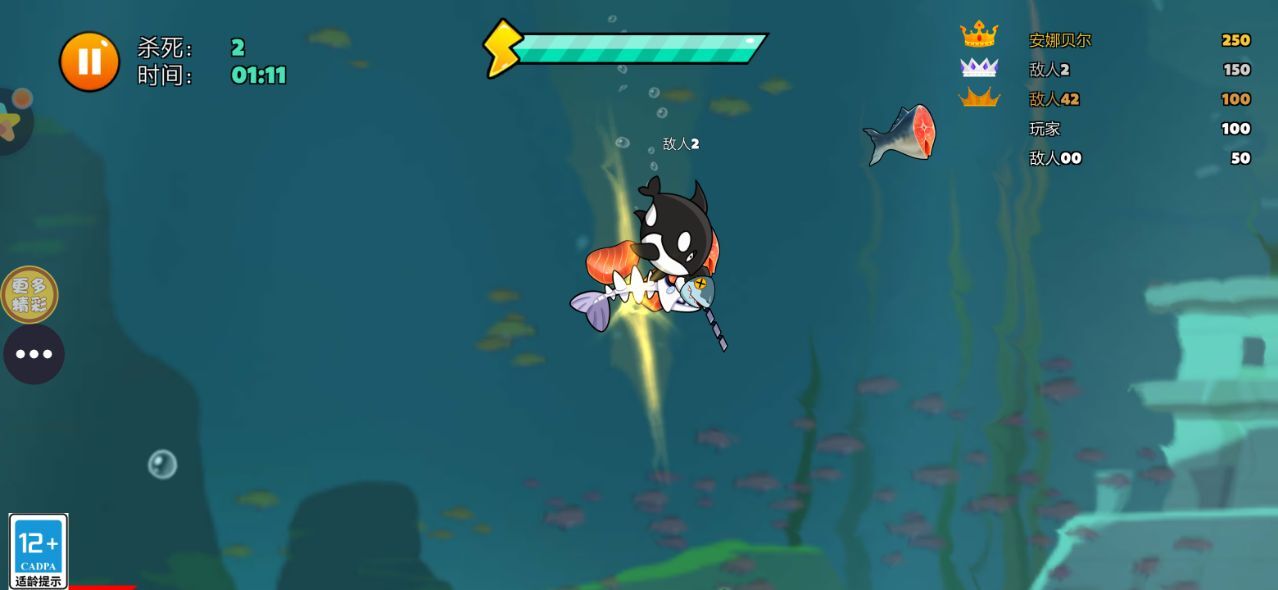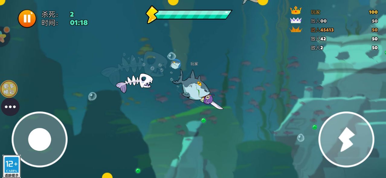 1在深邃的海底世界,你要引导角色开启一段充满挑战的冒险之旅。这里的生存法则简单而残酷:唯有持续捕食、积累能量,才能让角色一步步变强、完成蜕变;一旦停下前进的脚步,就可能在弱肉强食的环境中失去主动权,甚至成为其他生物的猎物。