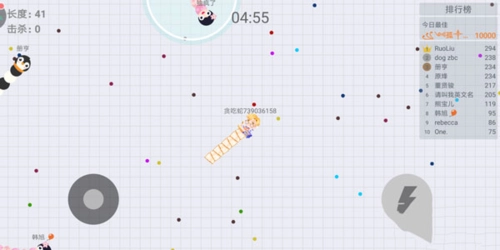 3.长按加速键,用巧妙的走位让蛇身被别人撞上,就可以吃掉他们啦。