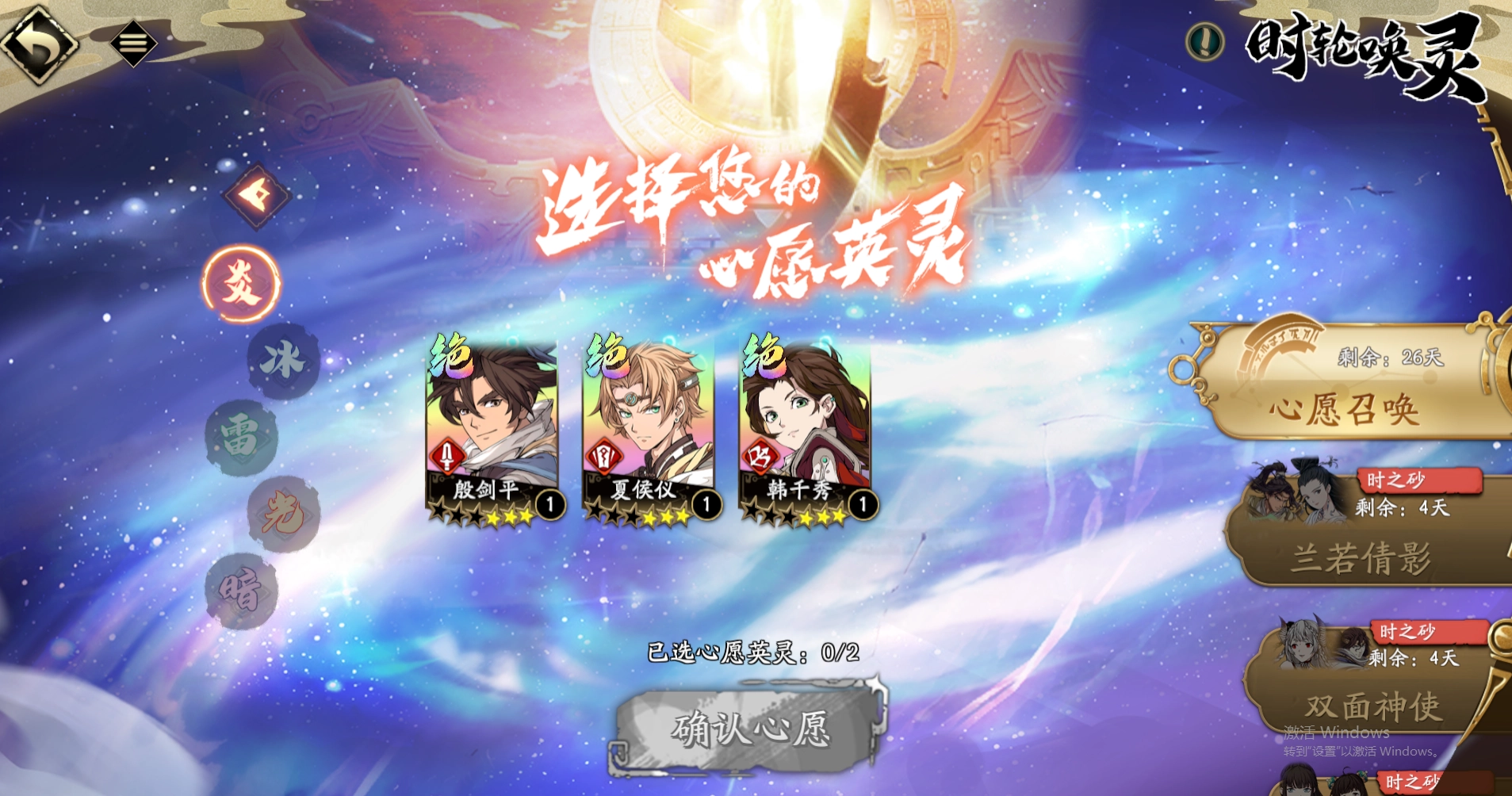 1、新手卡池里选殷剑平或者封寒月都挺合适的,挑一个点击召唤就行。