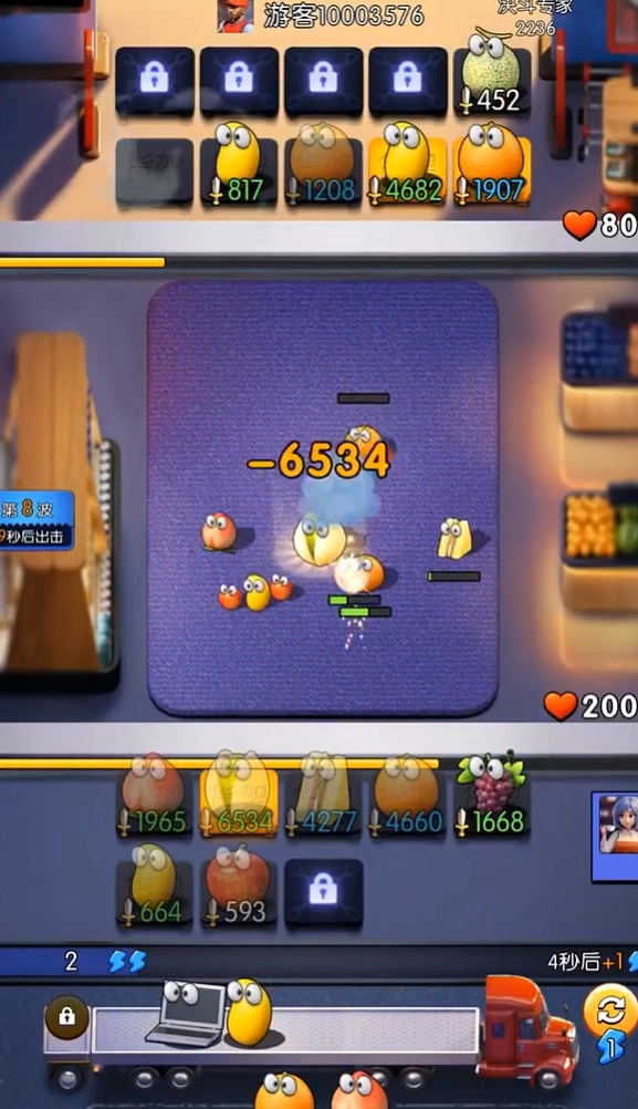 核心输出:选择攻击力强的零食卡牌作为主要输出。