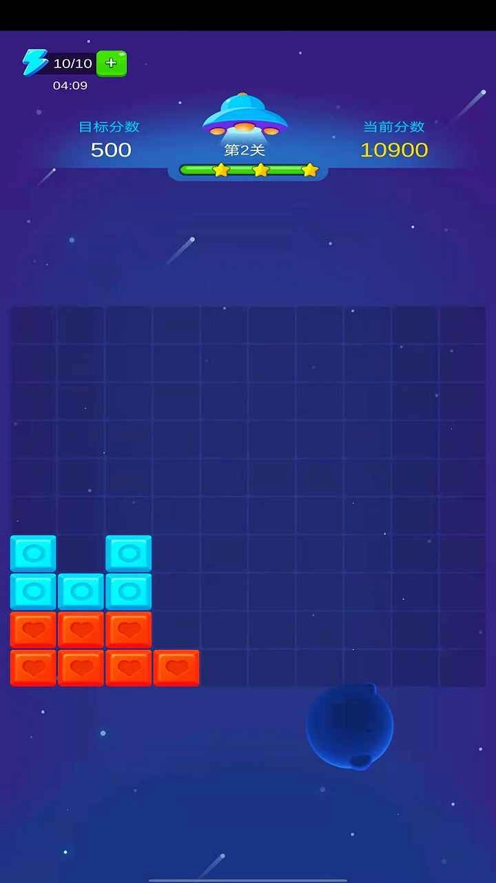 2、点击两个或多个相同颜色的方块消除分数一次消除的方块越多,得分越高。